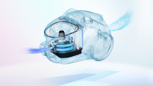 Visoka učinkovitost čak i kada je spremnik za prašinu pun? Moguća je uz tehnologiju Power AirCycle i tehnologiju Bosch motora. Precizno izračunat ciklon i optimalno vođen zrak tri puta kruži u spremniku za prašinu, a snažna centrifugalna sila odvaja prašinu od zraka.