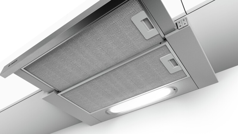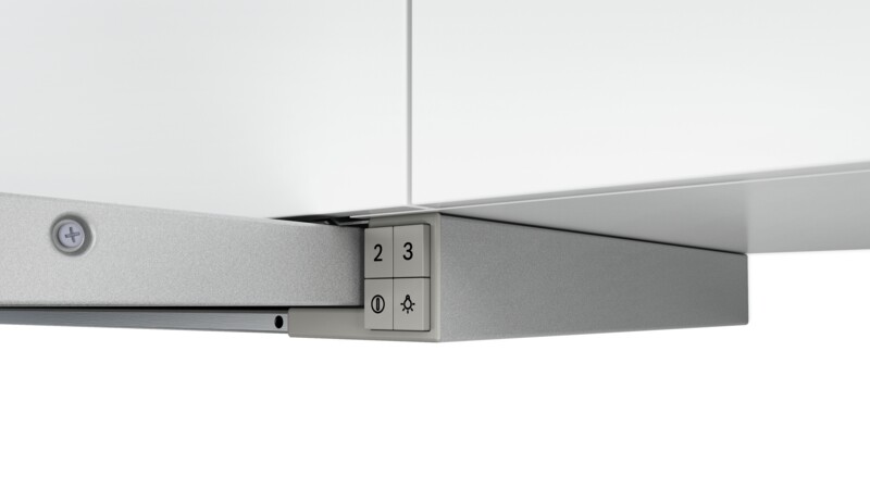 Napa na izvlačenje s ravnim zaslonom: gotovo neprimjetno se stapa s visećim kuhinjskim ormarićem i daje kuhinjskom pročelju elegantan izgled.