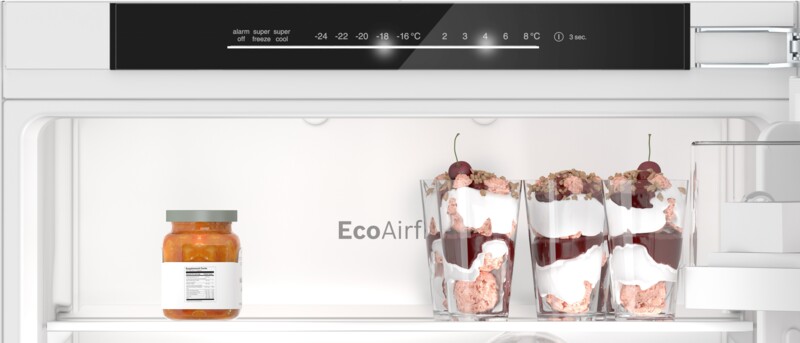 Prostrani ugradbeni hladnjak s zamrzivačem VitaFresh XXL <0°>, No Frost i stalnom temperaturom održava vašu hranu svježom duže. Sva vaša smrznuta hrana bez leda i u savršenom pogledu zahvaljujući dodatnom osvjetljenju prostora zamrzivača.