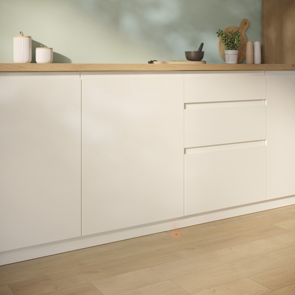 Povezana perilica posuđa sa smanjivanjem razine buke bilo kada putem aplikacije Home Connect, čak i za kuhinje s niskim visinama postolja i visokim ugradbenim prostorima.